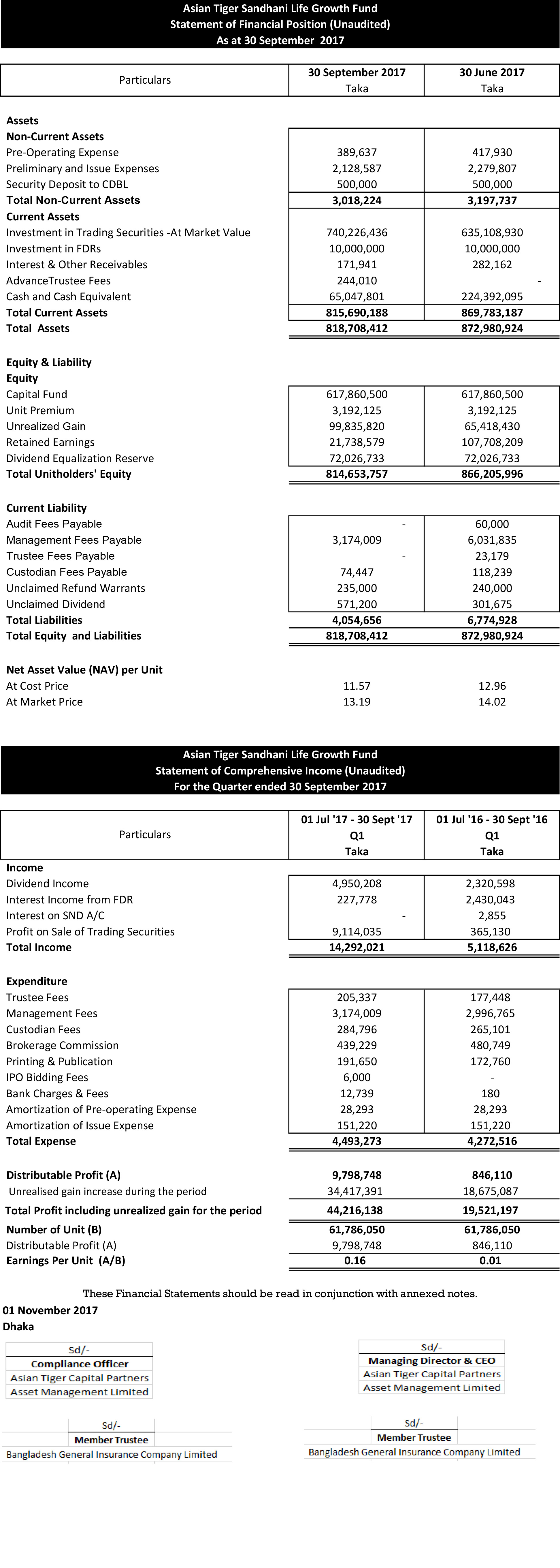 Q3 Financial Statements of Asian Tiger Sandhani Life Growth Fund