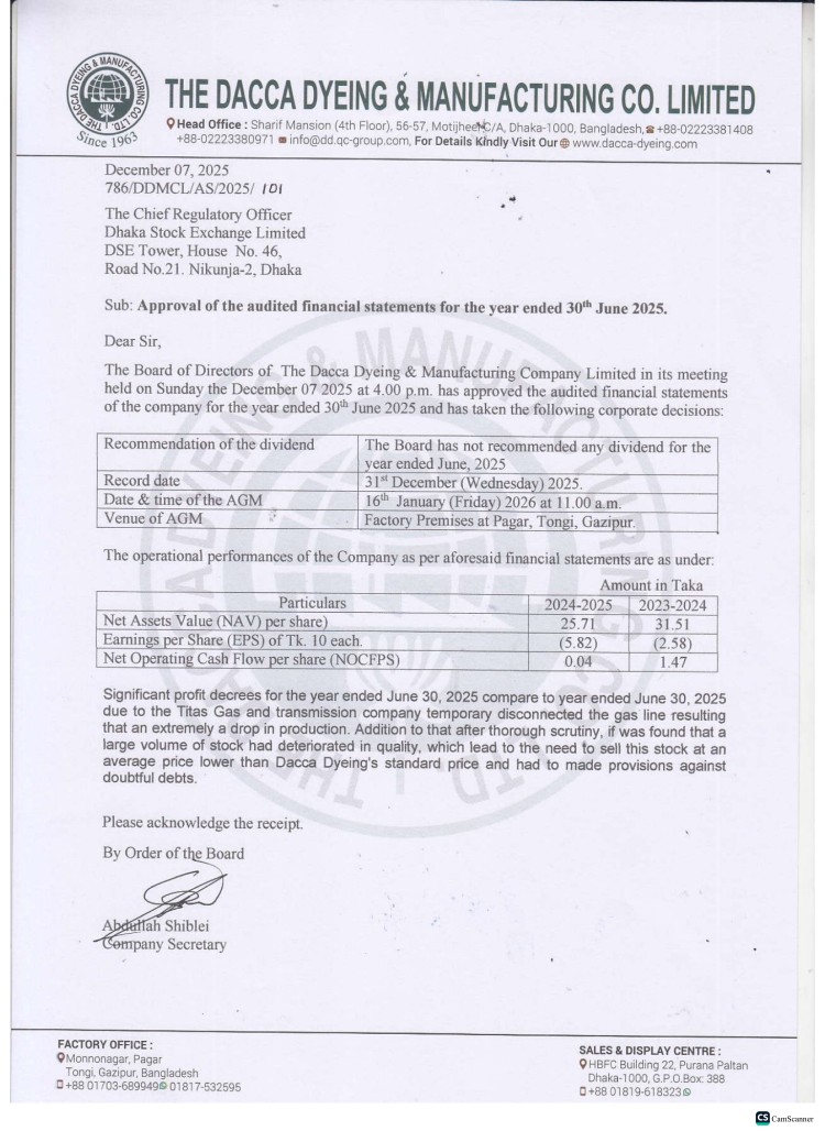 Audited Financial Statement of The Dacca Dyeing & Manufacturing Co.Ltd