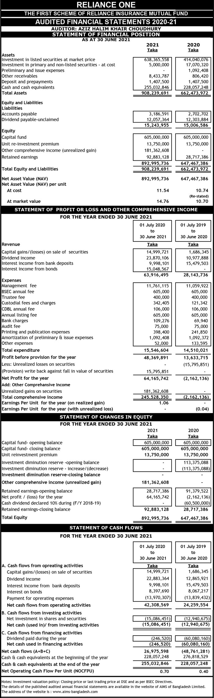 1st Quarterly Price Sensitive Information (PSI) and Financial Statements of Reliance One
