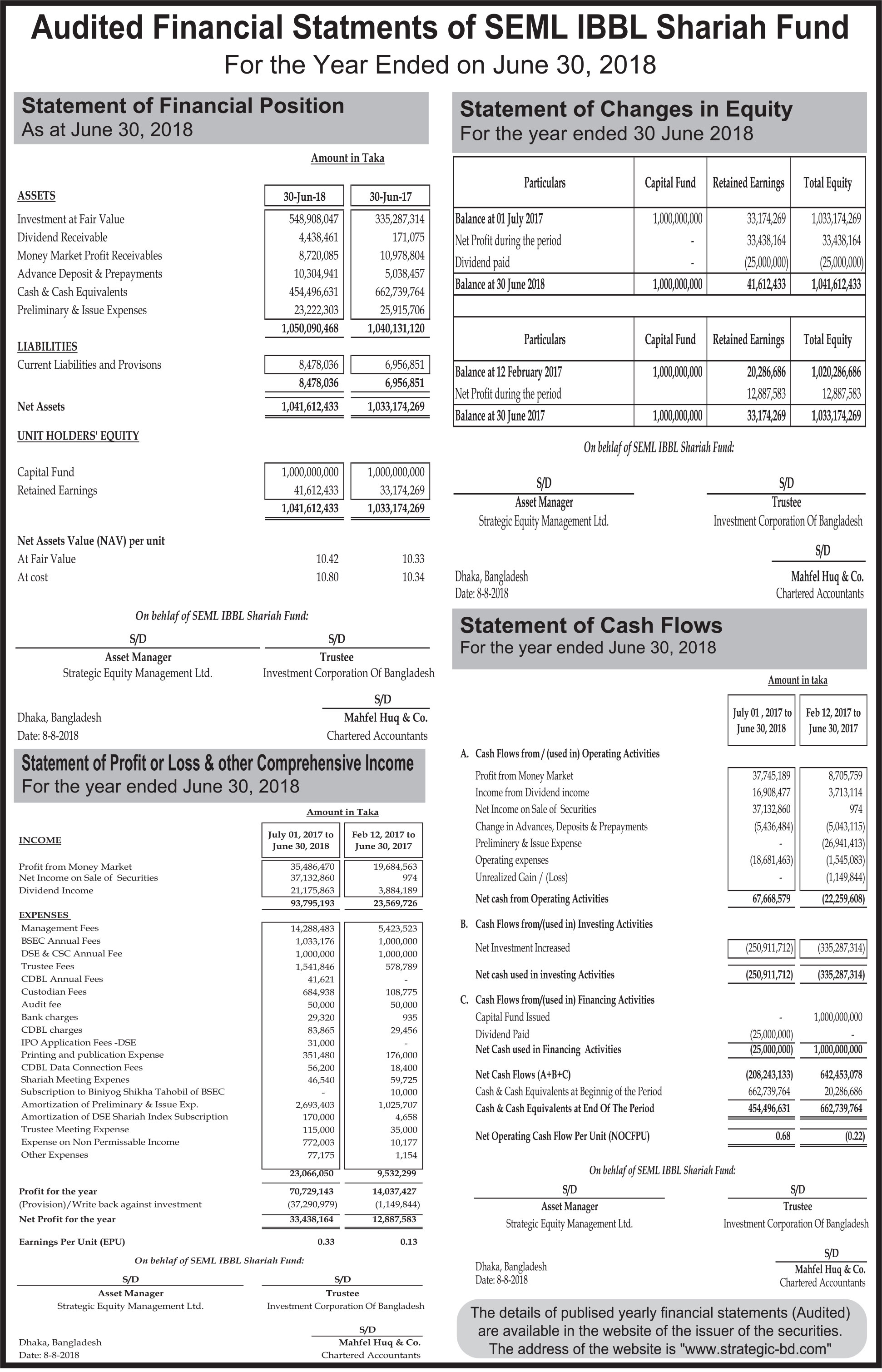 SEML IBBL Shariah Fund Q2 Un-audited Financial Statements