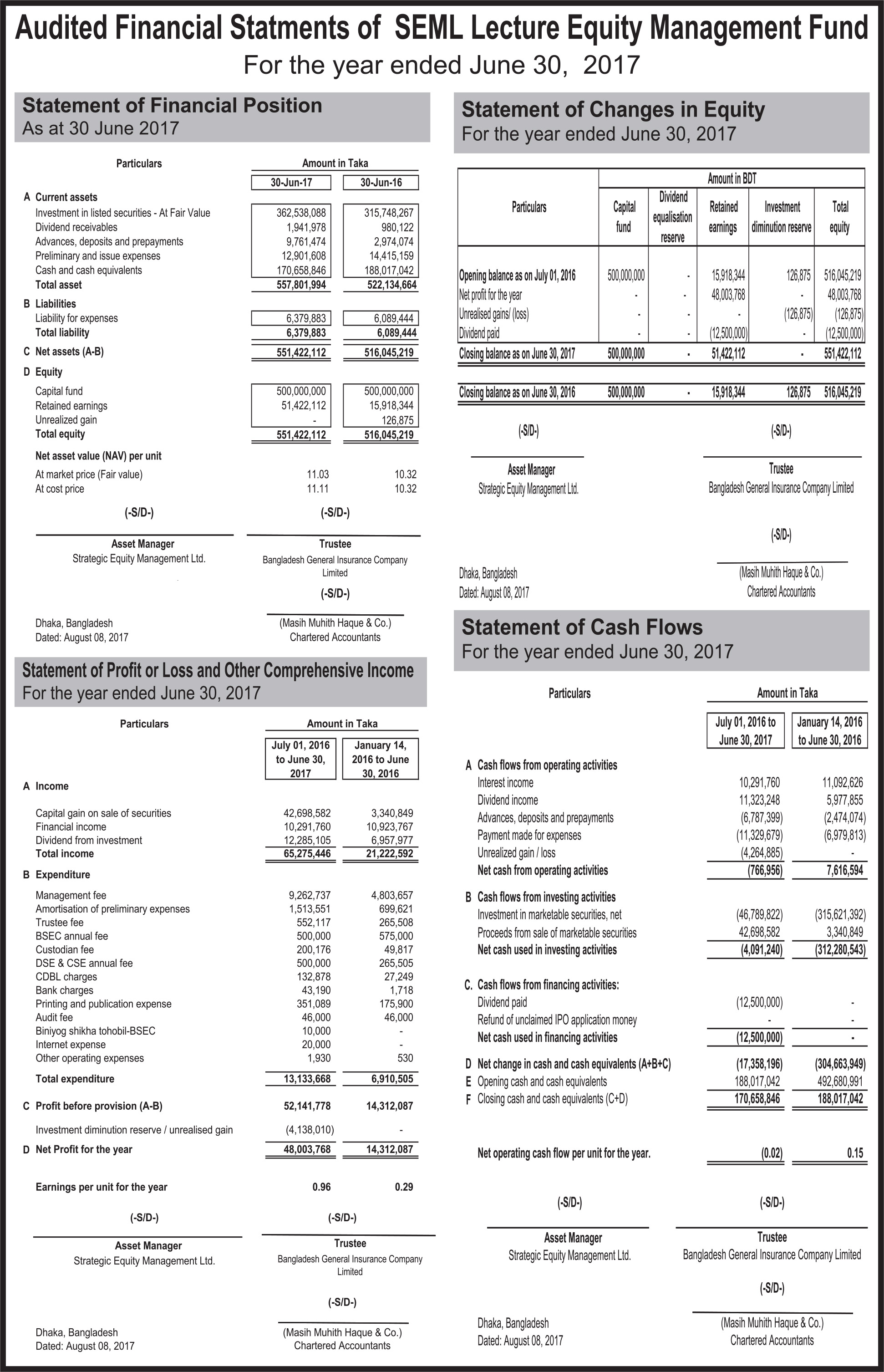 Quarterly (Q3) Financial Statements Of SEML Lecture Equity Management Fund