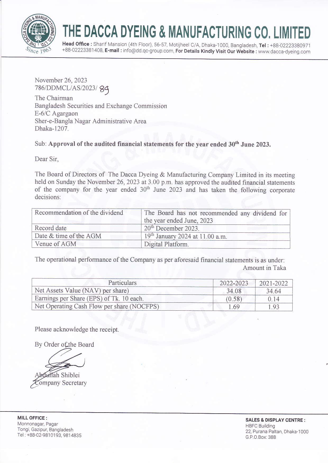 Audited Financial Statements of The Dacca Dyeing & Manufacturing Co.Ltd