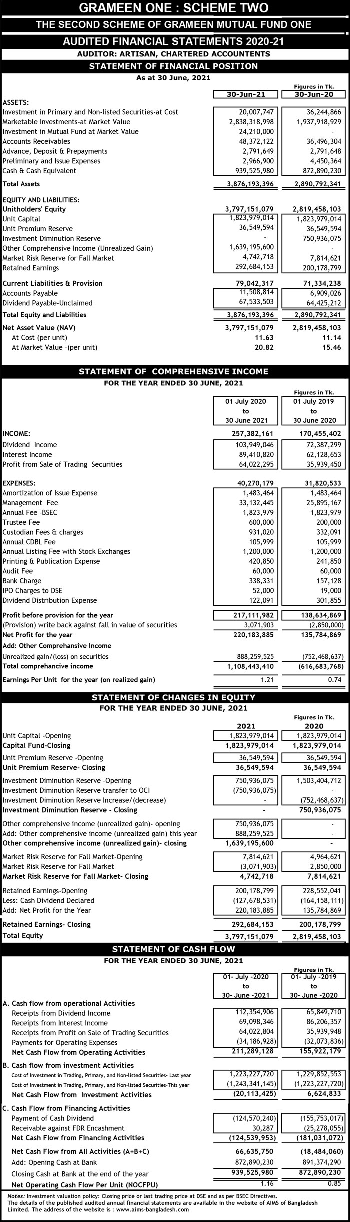 2nd Quarterly Price Sensitive Information (PSI) and Financial Statements of Grameen One: Scheme Two