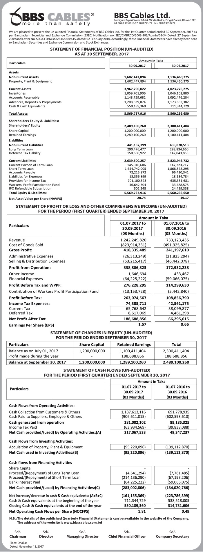 Q2 (Un-audited) Financial Statements of BBS Cables
