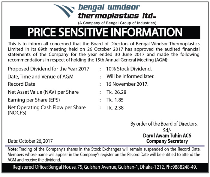 Price Sensitive Information of Bengal Windsor Thermoplastics PLC.