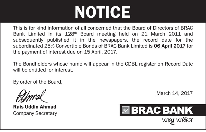 BRAC BANK LTD PRICE SENSITIVE INFORMATION MARCH 2017