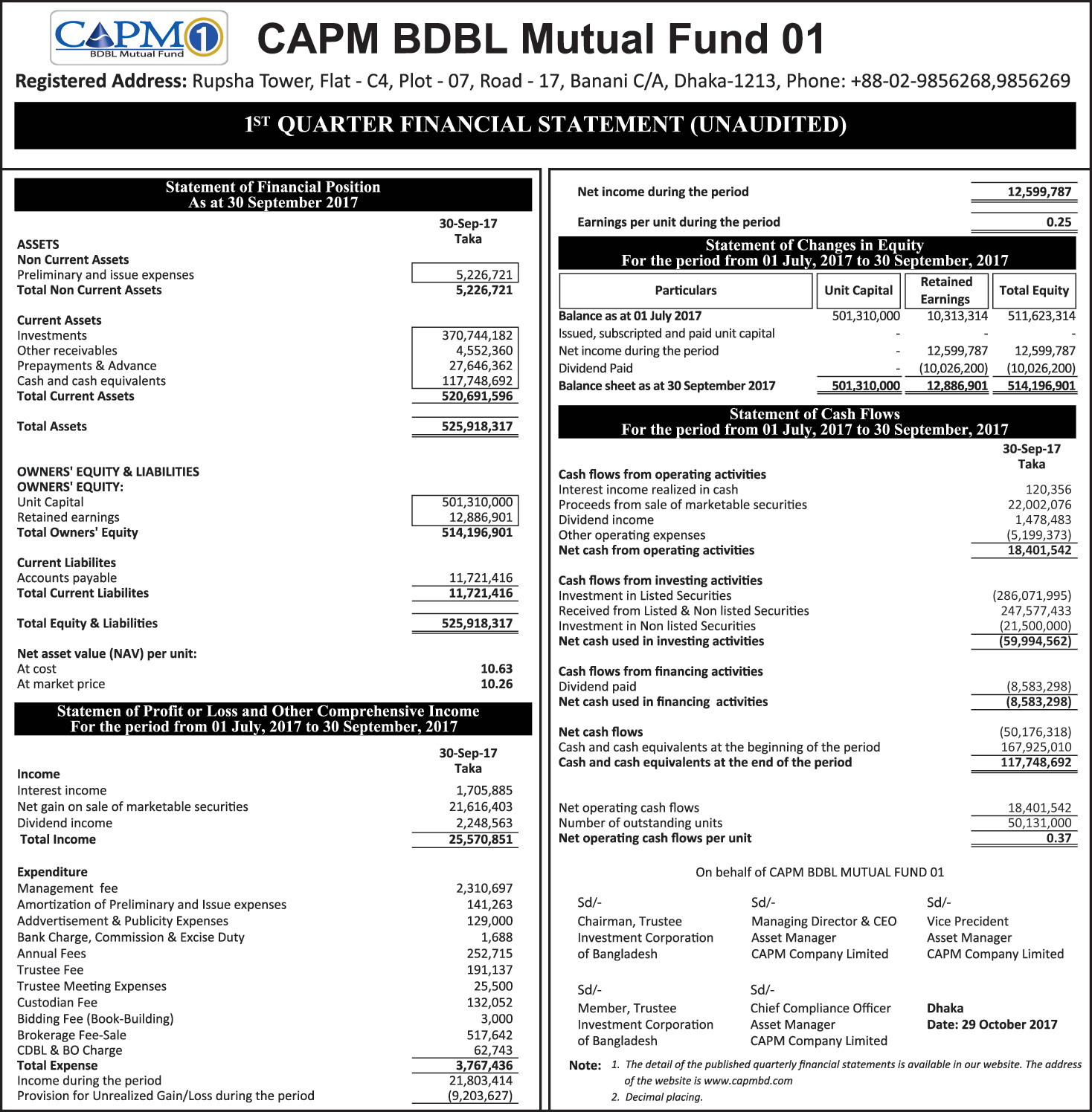 Q1 Financial Statements (Un-audited) of CAPM BDBL Mutual Fund 01