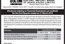 Q1 Un-audited Financial Statements of Exim Bank