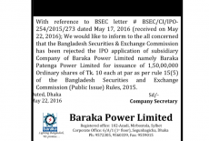 Notice to the Shareholders/Investors of Baraka Power Limited