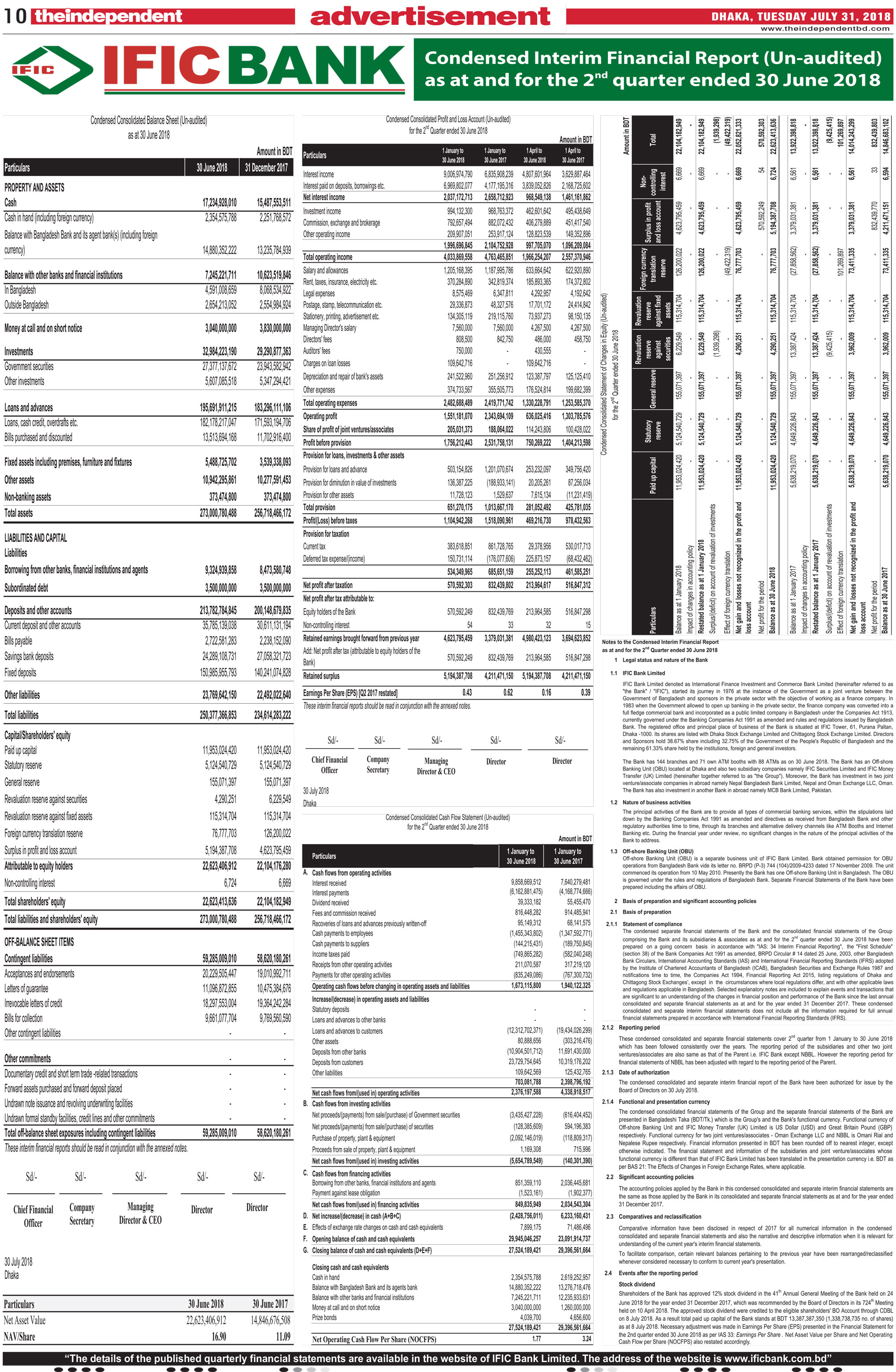 Condensed Interim Financial Report (Un-audited) for Q2 of IFIC Bank