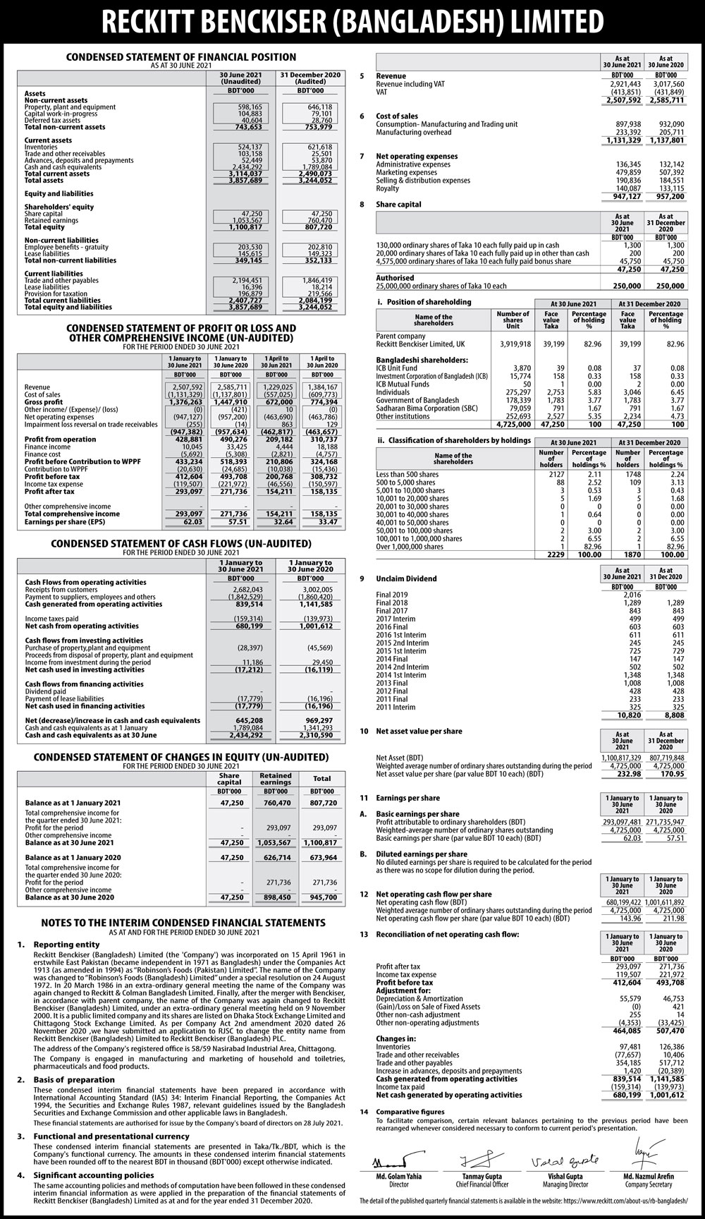 Q2 Financial Statements of Reckitt Benckiser (Bangladesh) PLC.