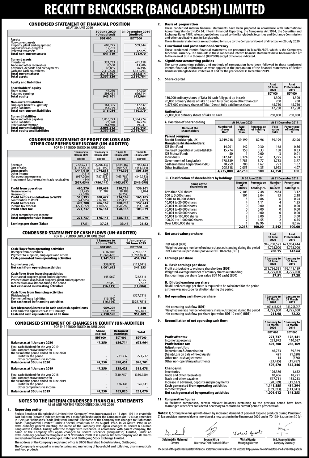 Q2 Financial Statements of Reckitt Benckiser (Bangladesh) PLC.