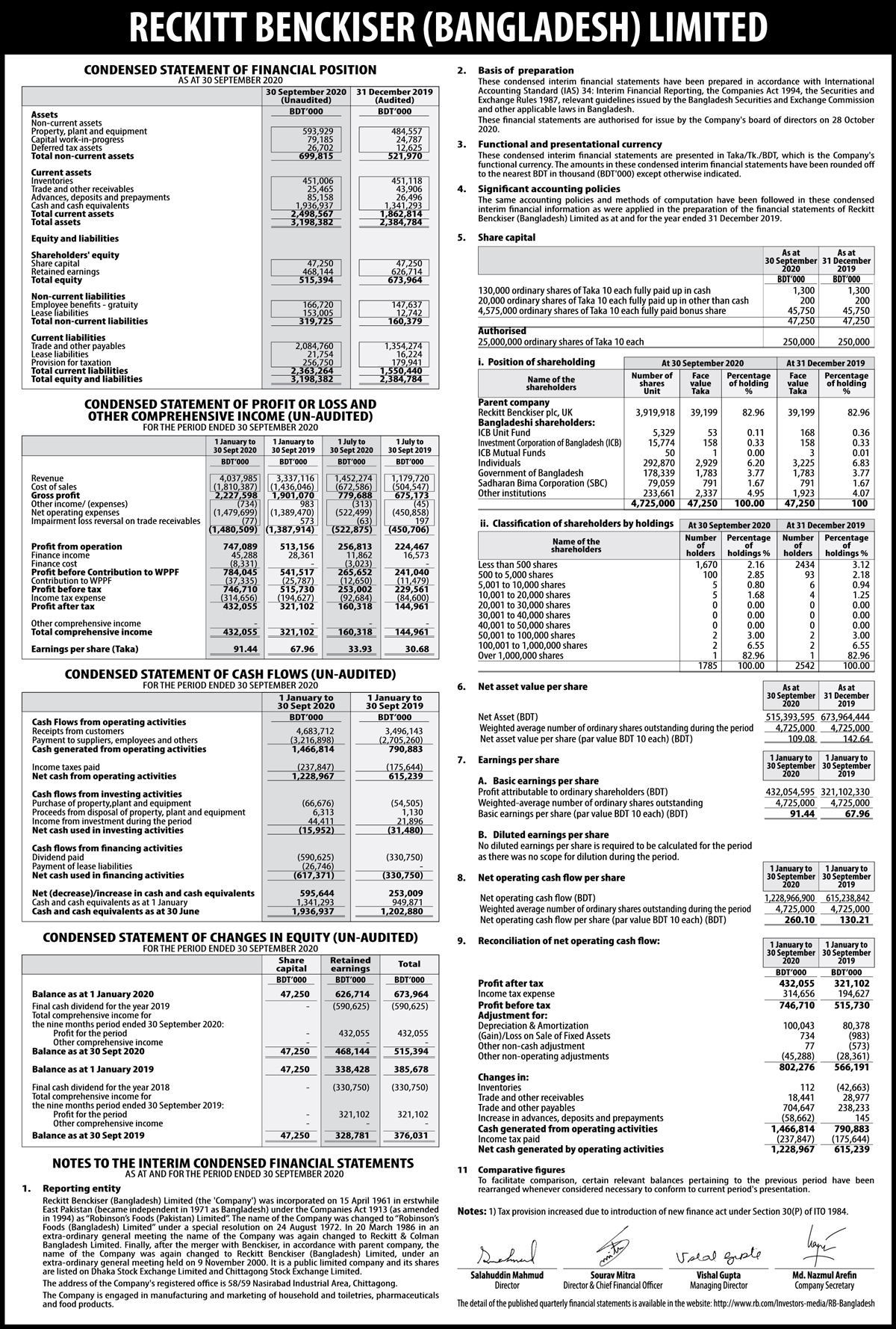 Q2 Financial Statements of Reckitt Benckiser (Bangladesh) PLC.