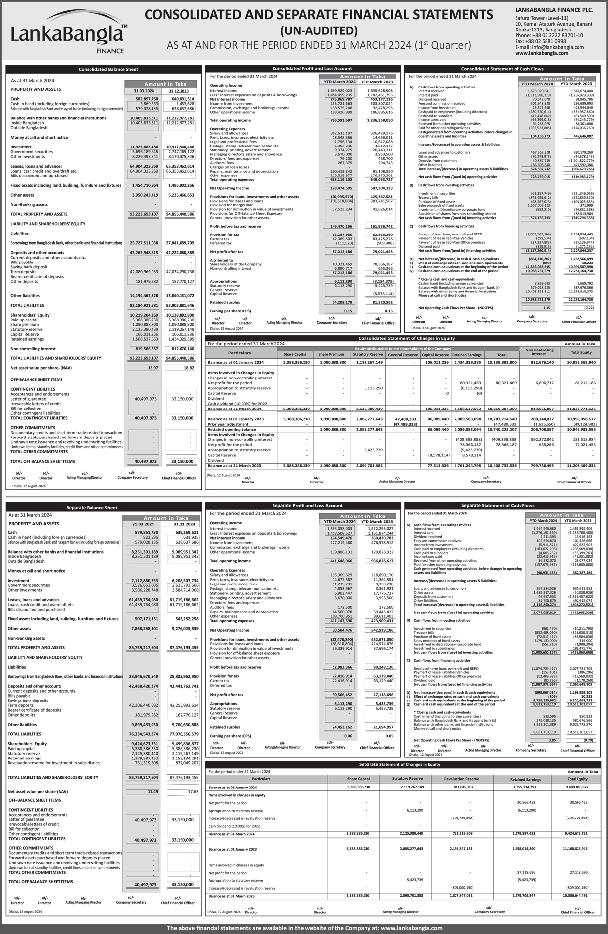 Consolidated and Separate Financial Statements of LankaBangla Finance PLC.