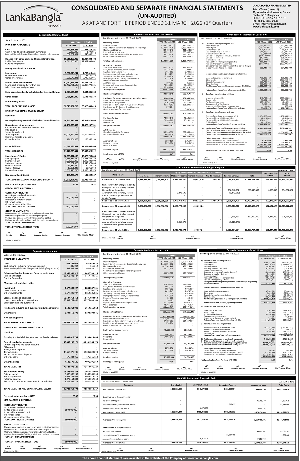 Consolidated and Separate Financial Statements (Un-audited) of LankaBangla Finance