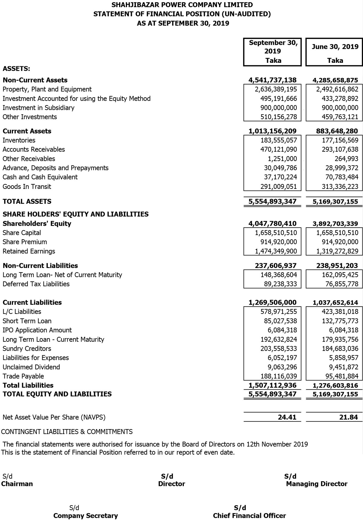 Q2 Un-audited Financial Statements of Shahjibazar Power Co. Ltd