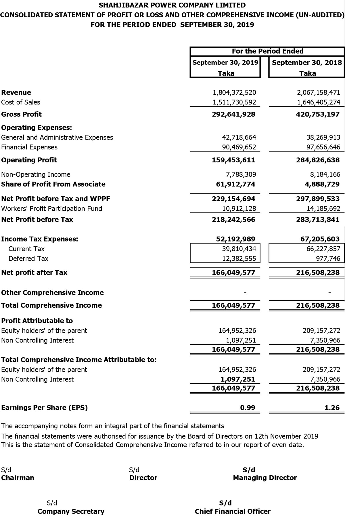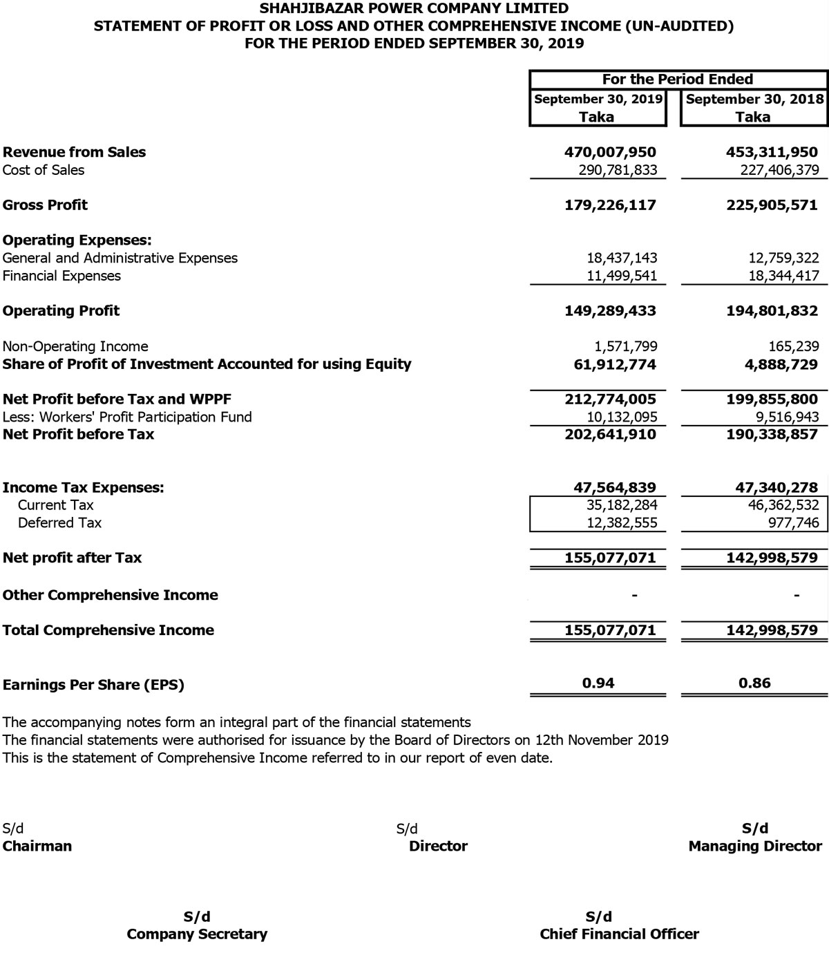 Q3 Un-audited Financial Statements of Shahjibazar Power Co. Ltd