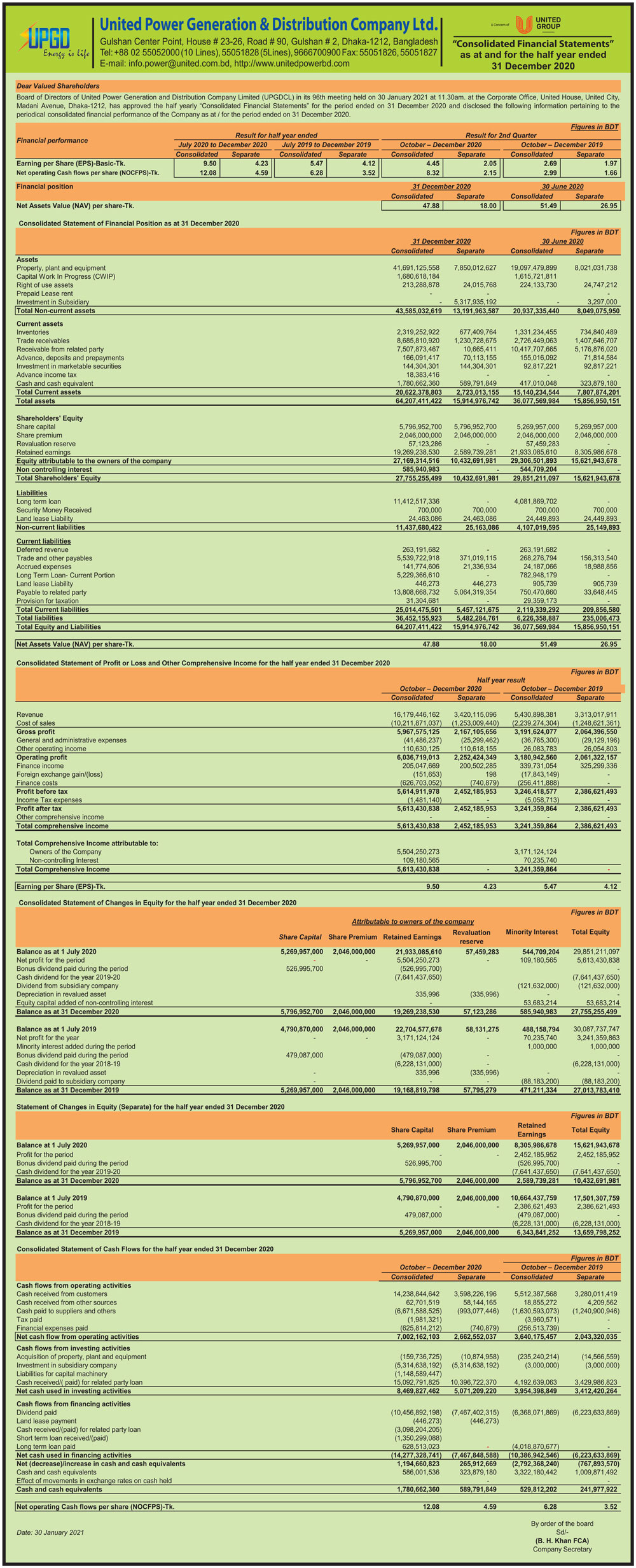 Financial Statements of United Power Generation & Distribution Company Ltd
