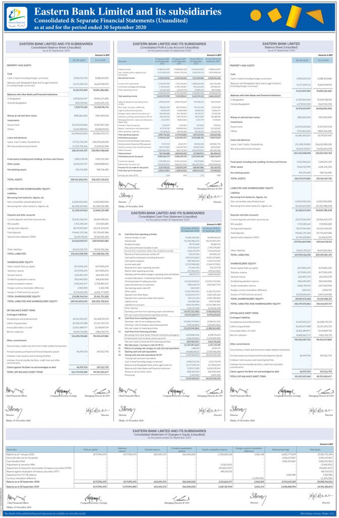 Consolidated & Separate Financial Statements (Unaudited) Of Eastern Bank Limited