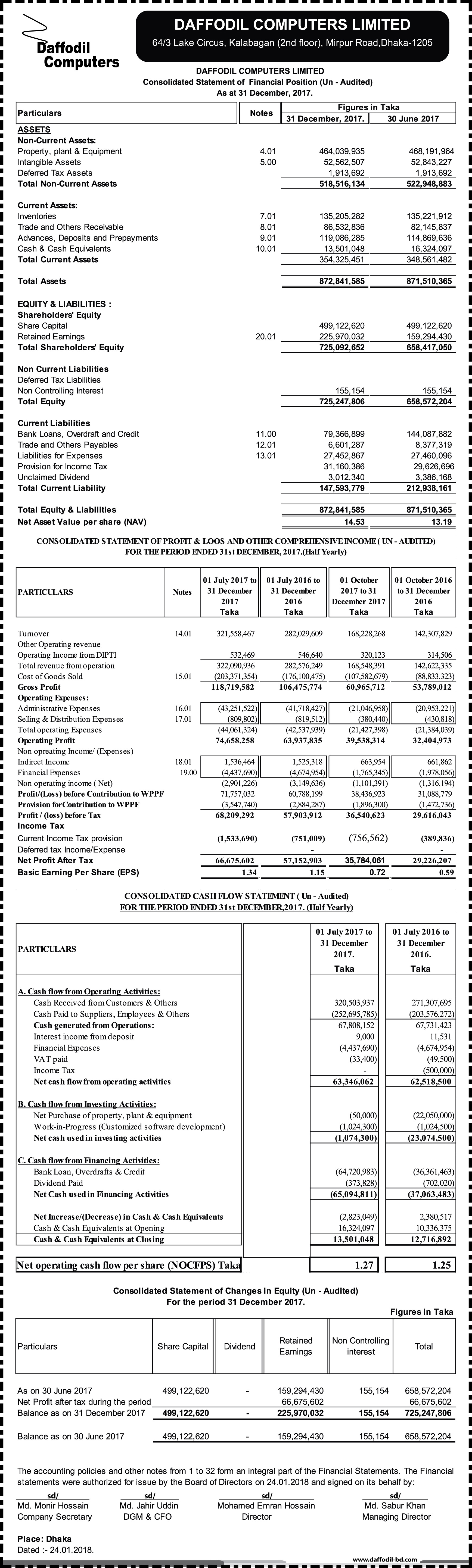 Consulated Statement of Financial Position (Un-audited) of Daffodil Computers Ltd