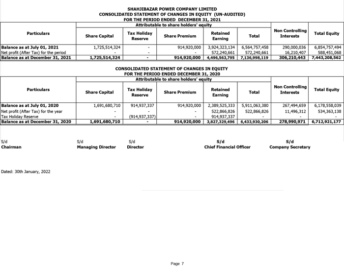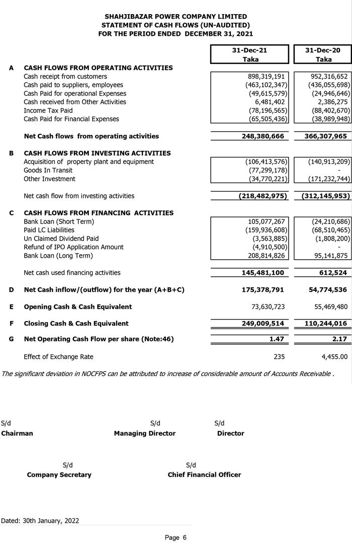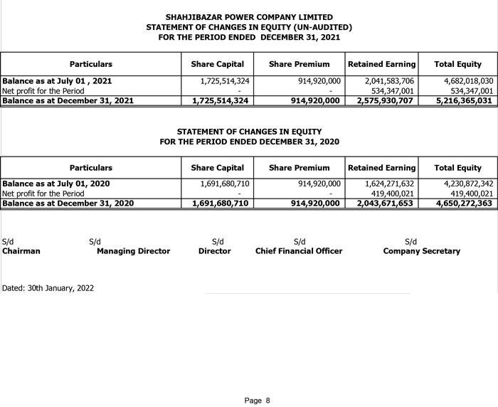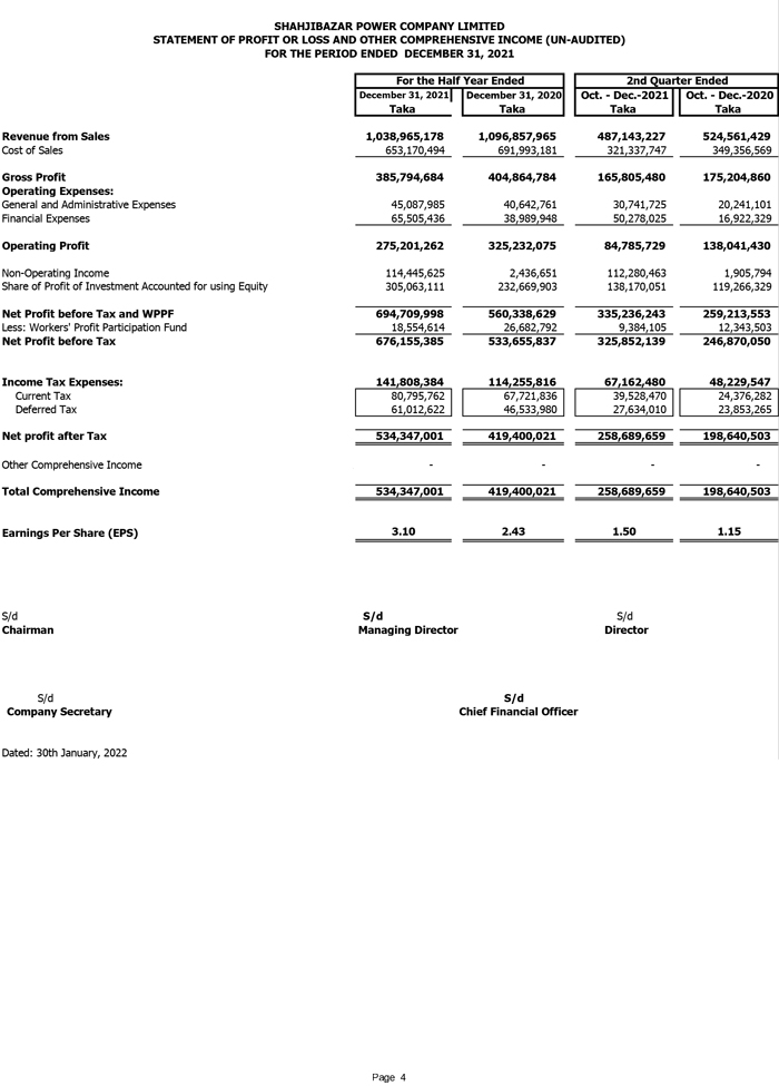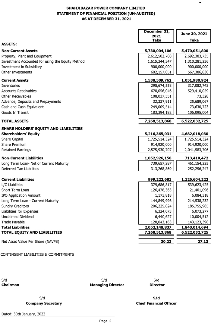 Q2 Un-audited Financial Statements of Shahjibazar Power Co. Ltd
