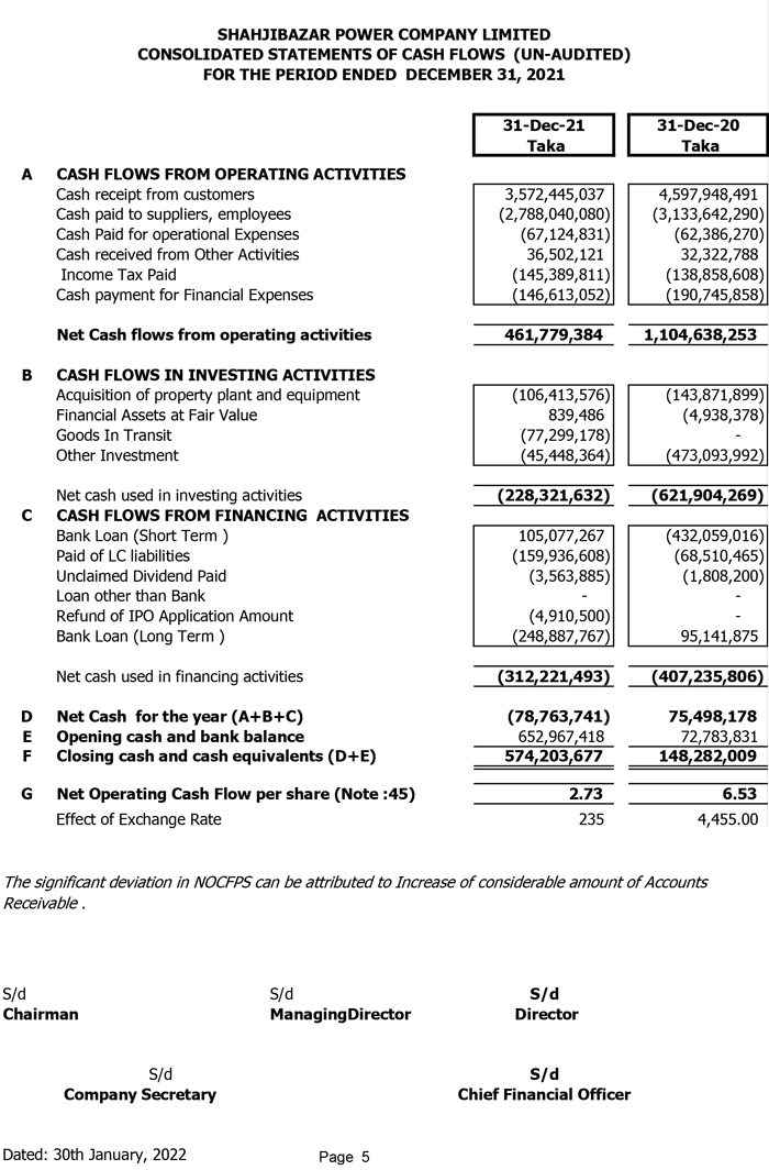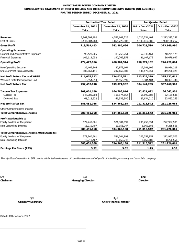 Q3 Un-audited Financial Statements of Shahjibazar Power Co. Ltd
