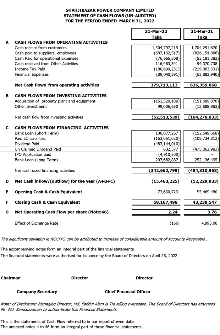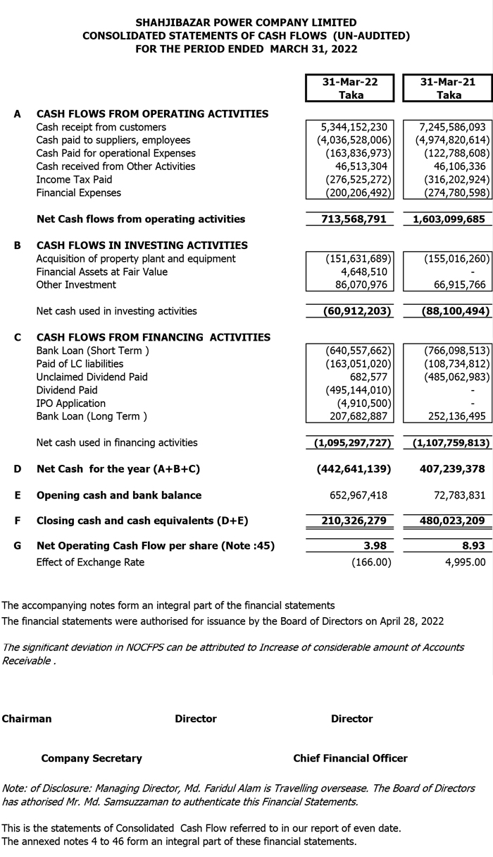 Q1 Financial Statements of Shahjibazar Power Co. Ltd
