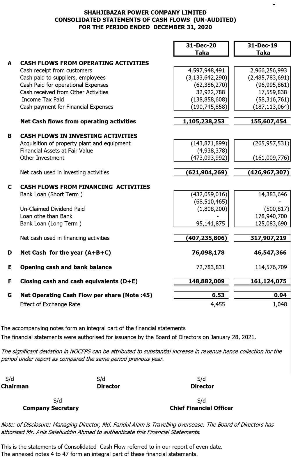 Q1 Financial Statements of Shahjibazar Power Co. Ltd