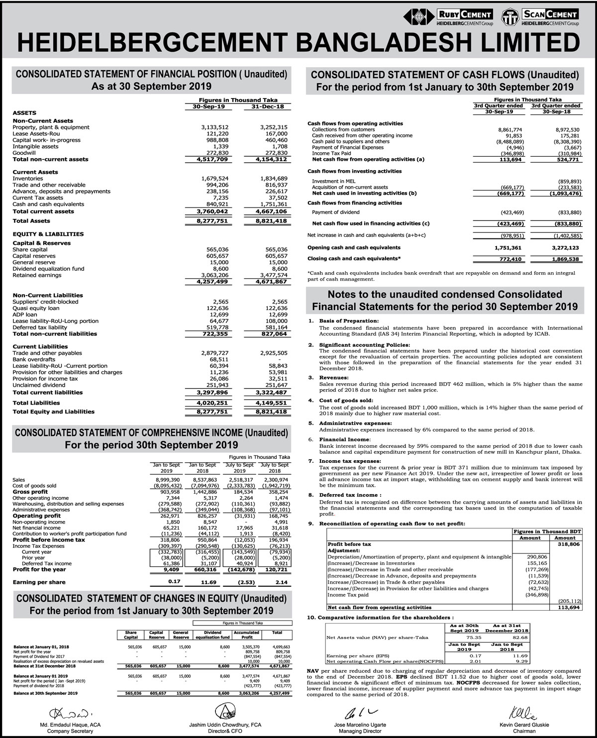 Q2 (un-audited) Financial Statements of HeidelbergCement Bangladesh