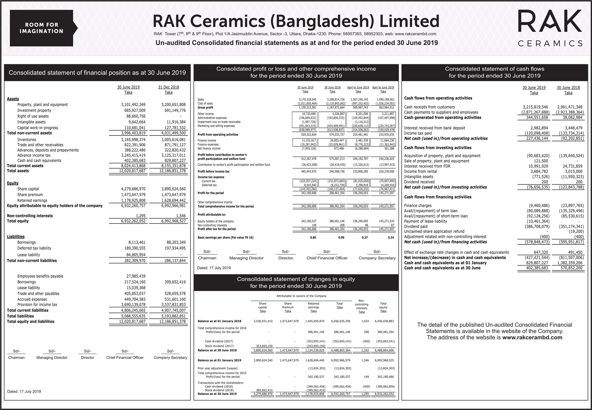 Un-audited Consolidated Financial Statements of RAK Ceramics (Bangladesh) Limited