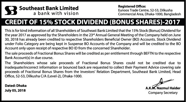Refixation of Date of the 29th AGM of Southeast Bank PLC