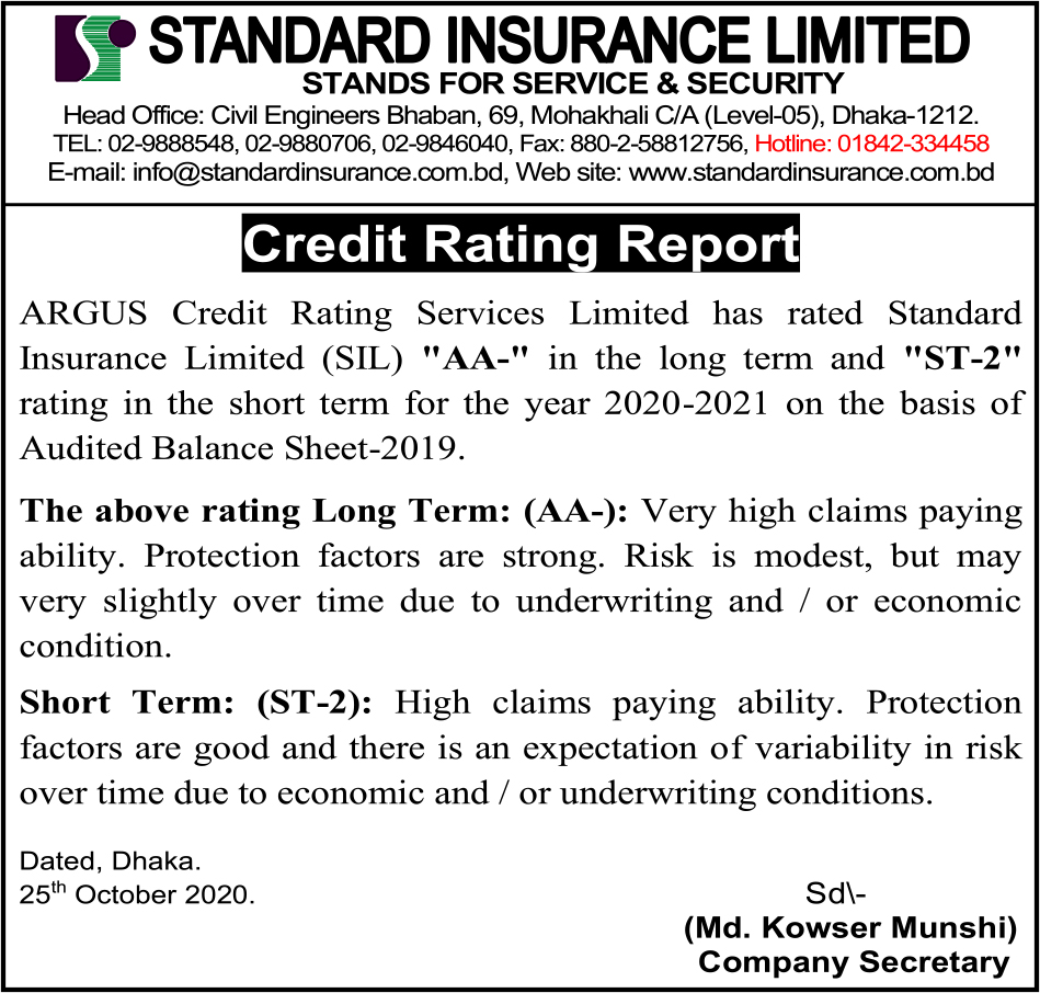 Credit Rating Report of Standard Insurance Limited