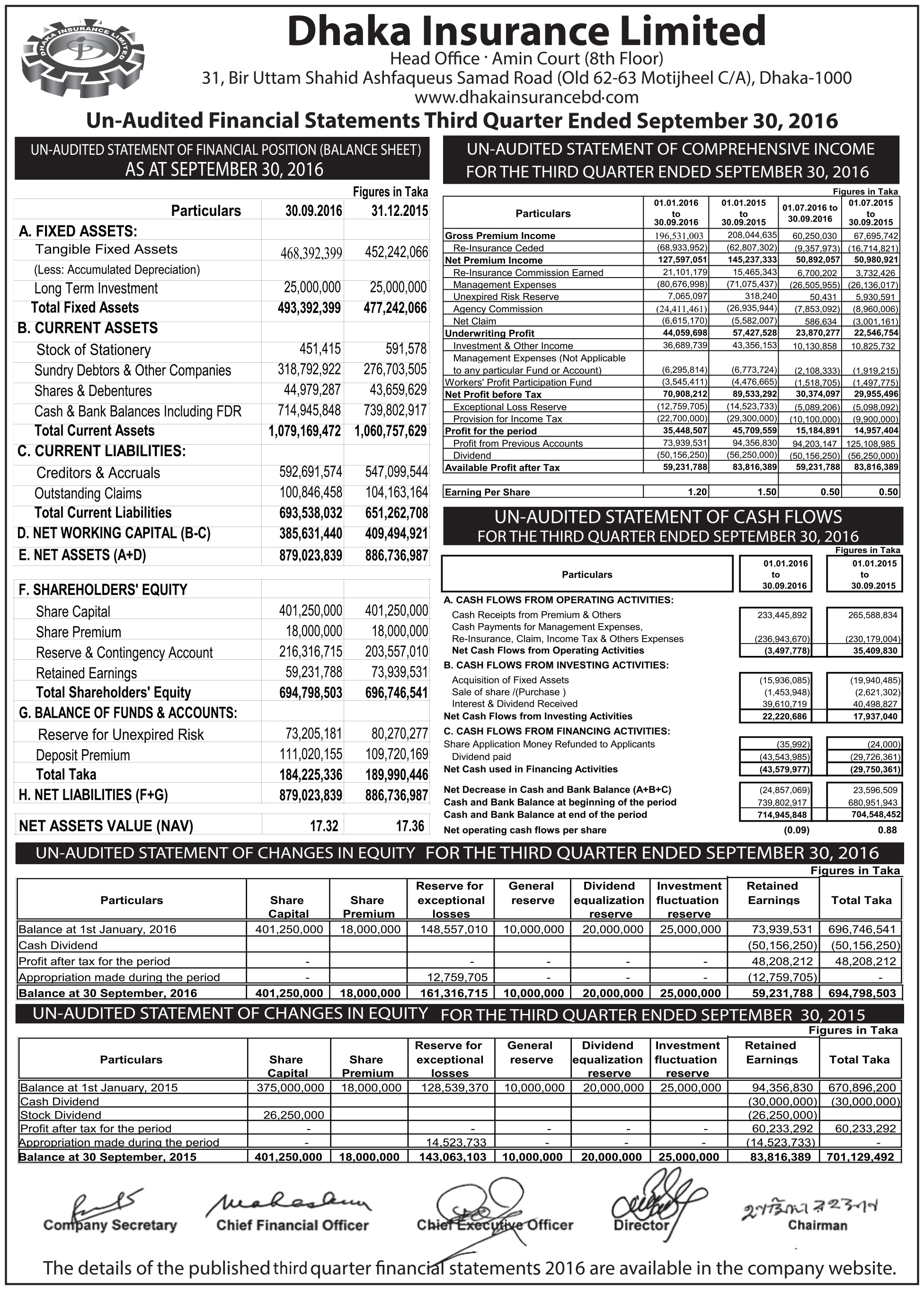 Q3 Financial Statements (Un-audited) of Dhaka Insurance Limited