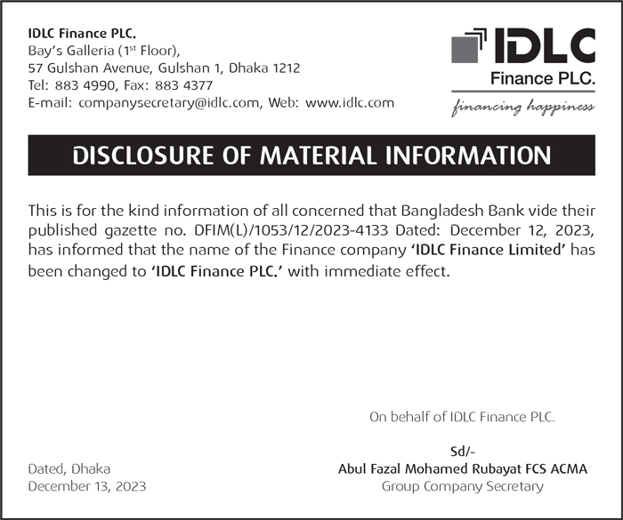 Price Sensitive Information IDLC to Launch Islamic Finance Window