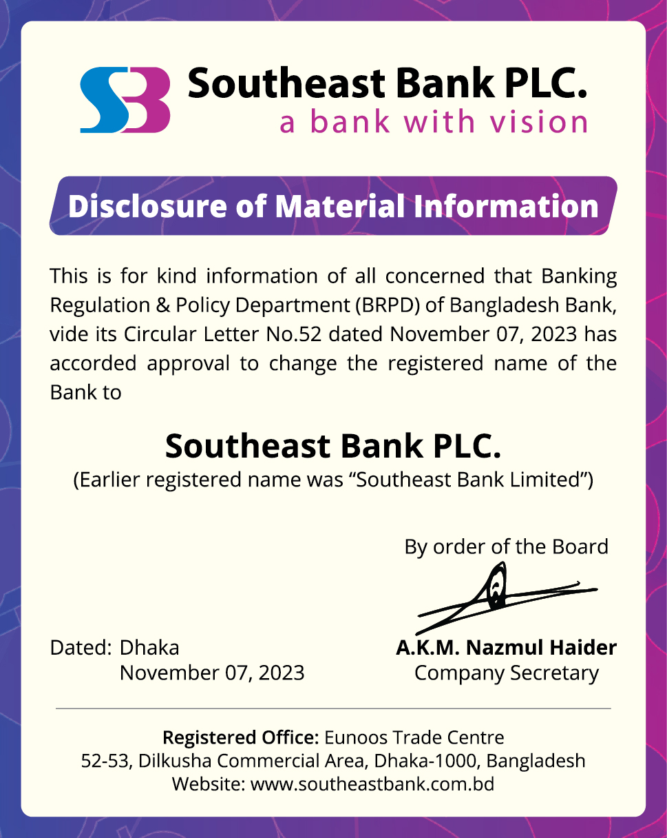 Disclosure of Material Information of Southeast Bank PLC