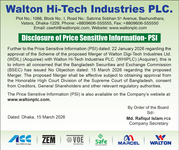 Price Sensitive Information (PSI) of Walton Hi-Tech Industries PLC (WHIPLC) regarding Merger.