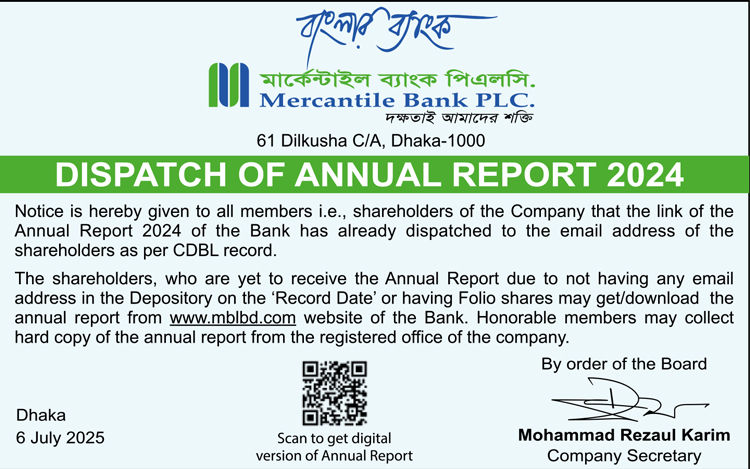 Dispatch of Annual Report 2024 of Mercantile Bank PLC.