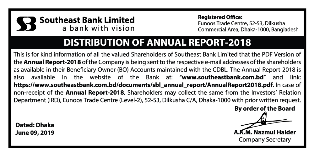 Distribution of Annual Report-2018 of Southeast Bank
