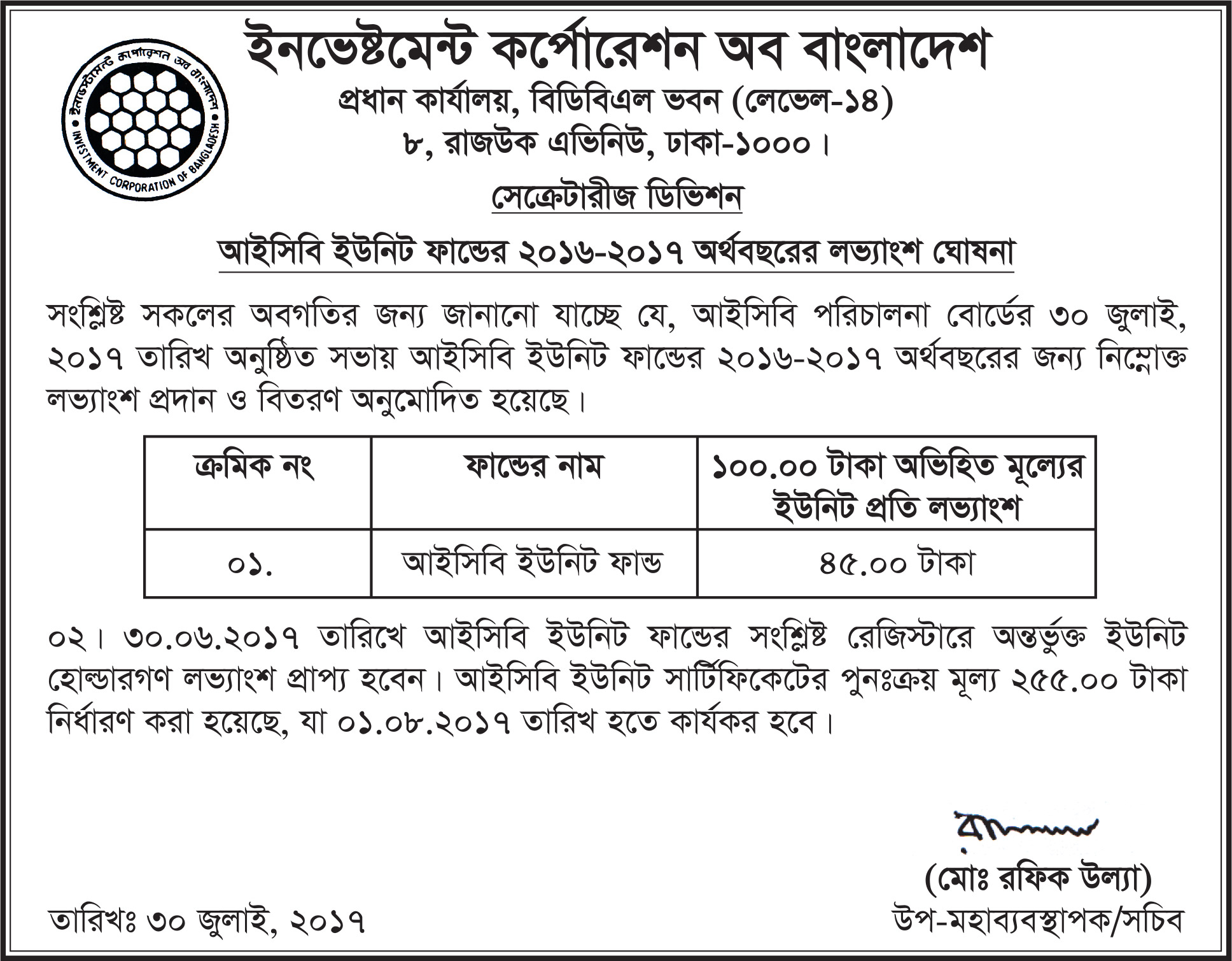 Price Sensitive Information of Investment Corporation of Bangladesh (ICB)