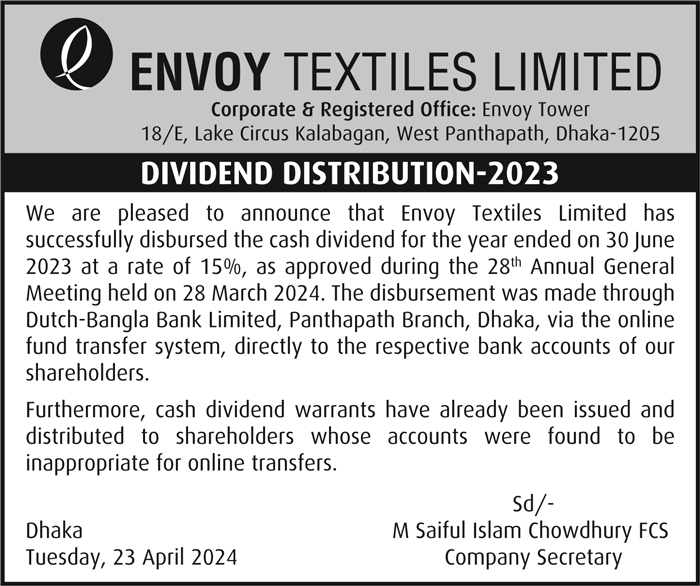 Dividend Distribution of Envoy Textiles Limited