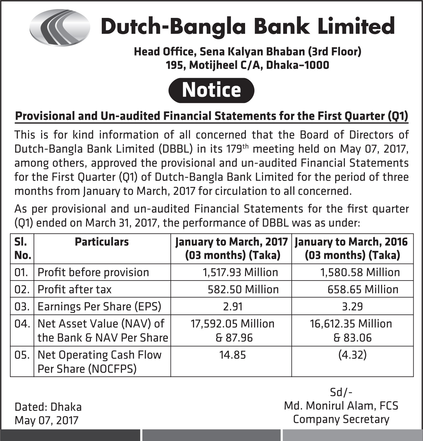 Dutch-Bangla BankLimited Un-audited (Q1) Financial Statement