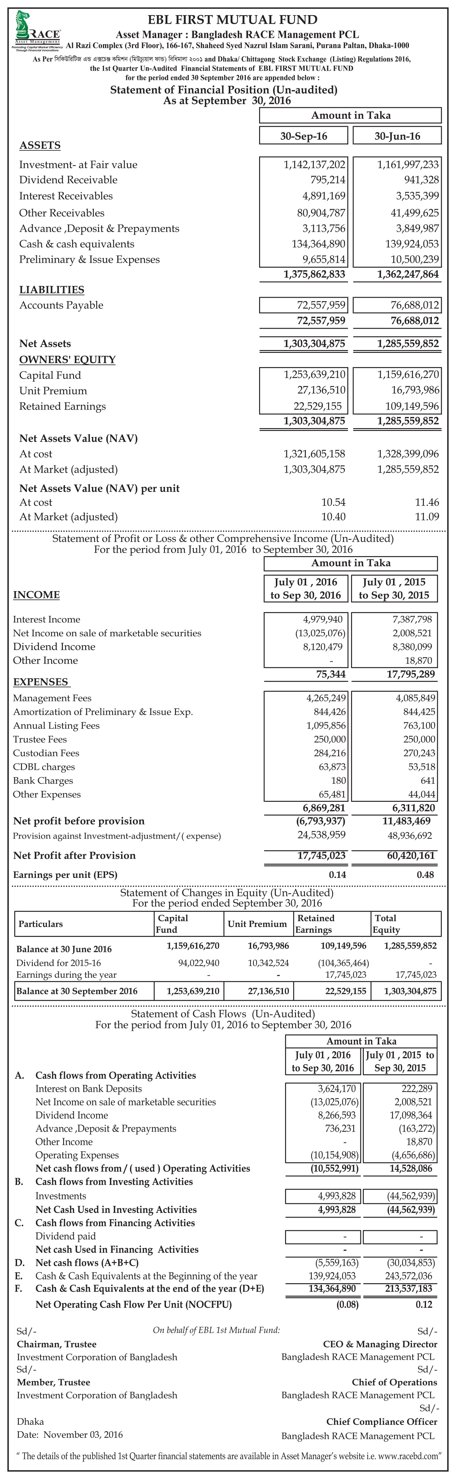 EBL First Mutual Fund 1Q Financial Statements
