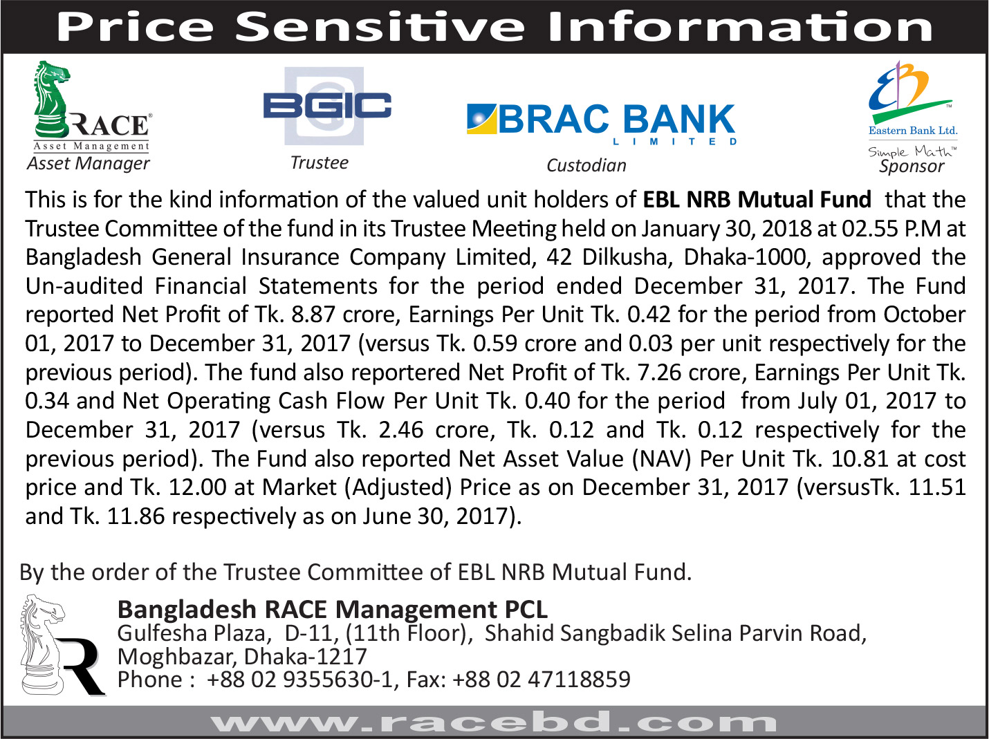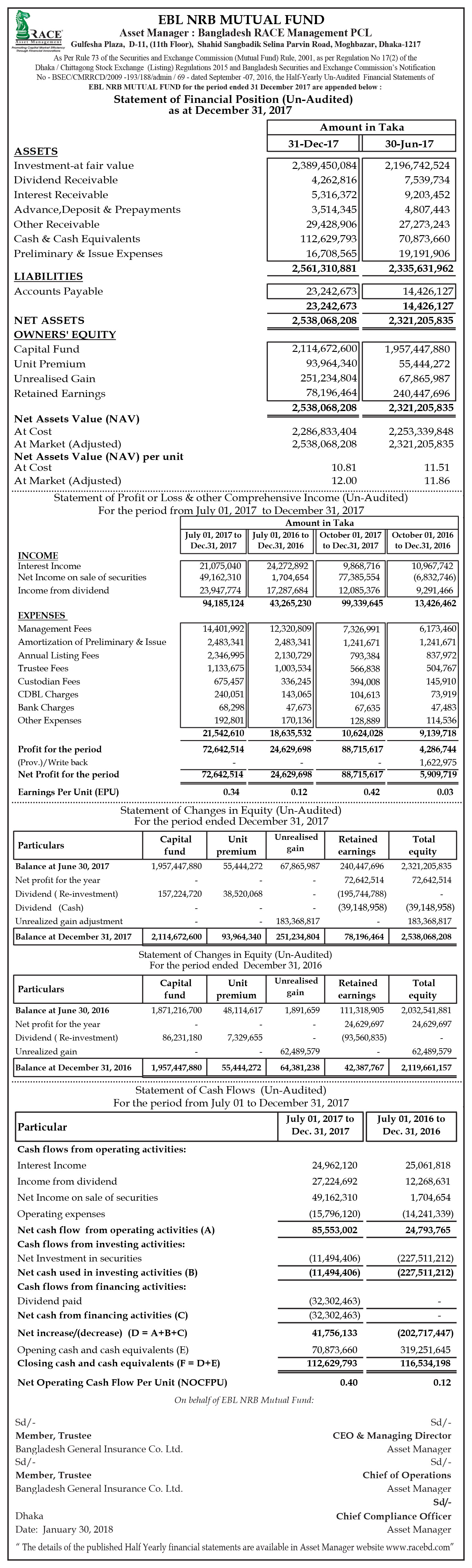 Un-audited Statements of Financial Position of EBL NRB Mutual Fund