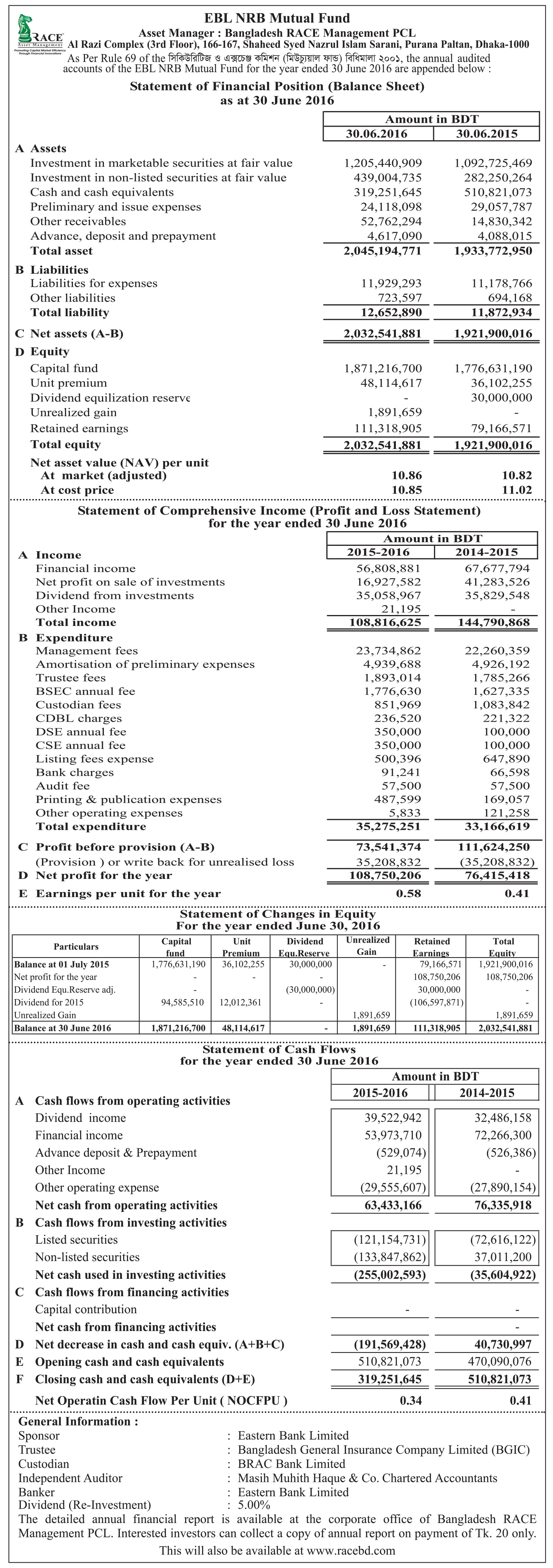 Un-audited Statements of Financial Position of EBL NRB Mutual Fund
