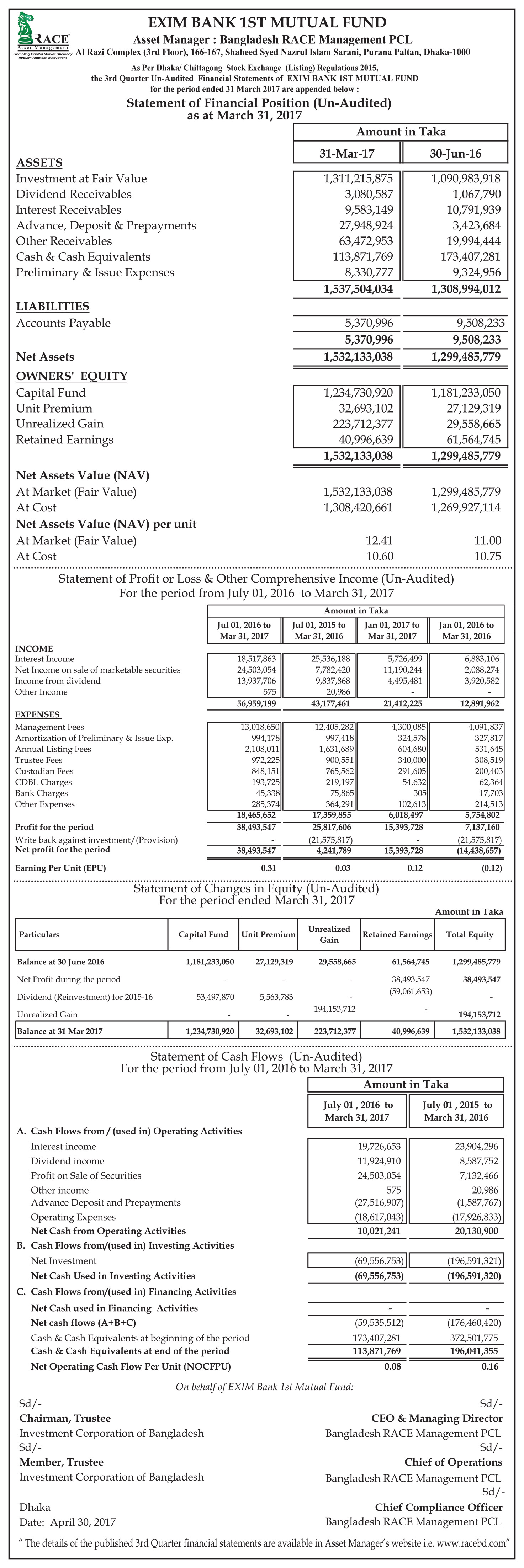 EXIM Bank 1st Mutual Fund 3Q Financial Statements