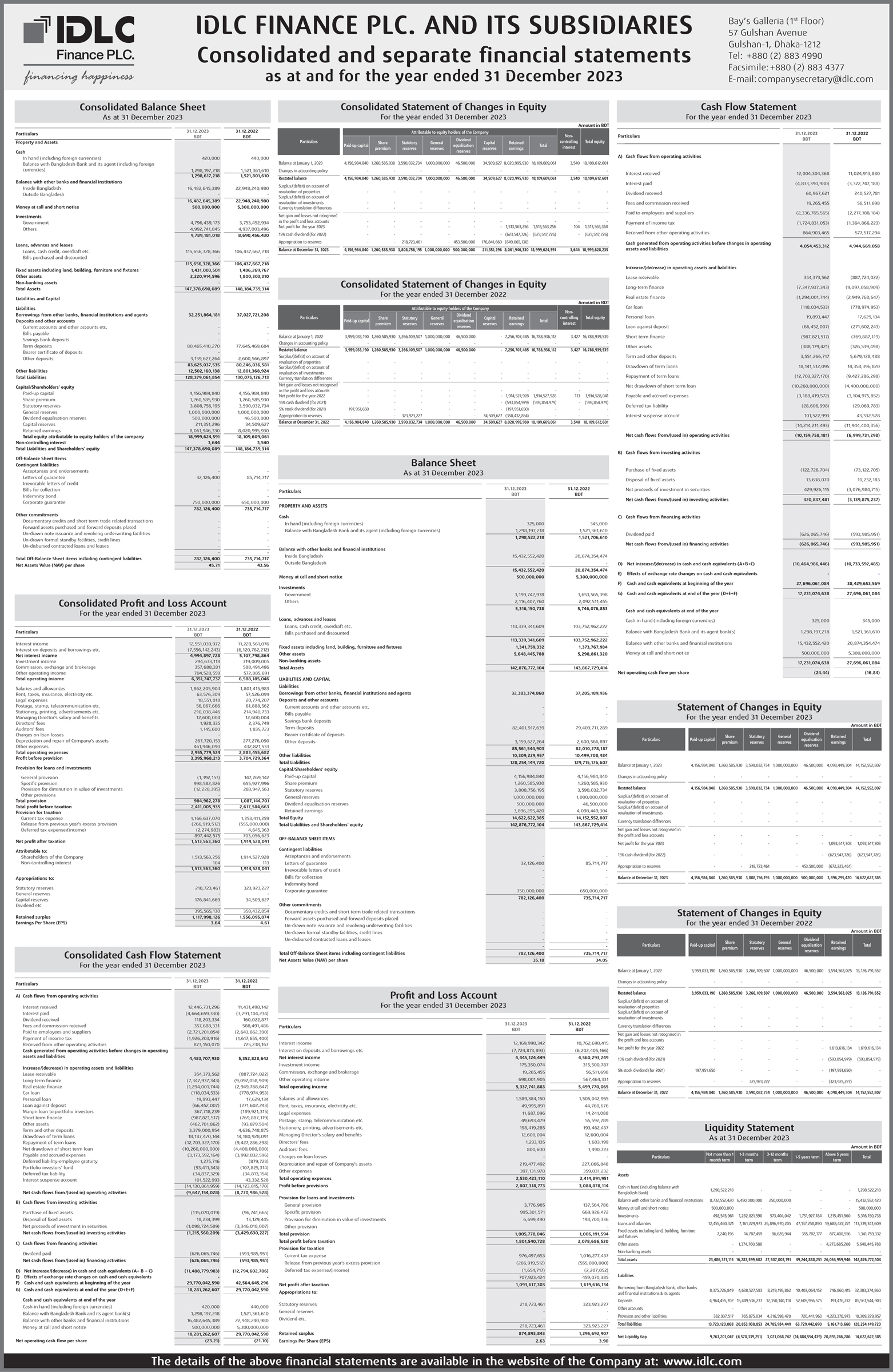 Consolidated and Separate Financial Statements of IDLC Finance Ltd