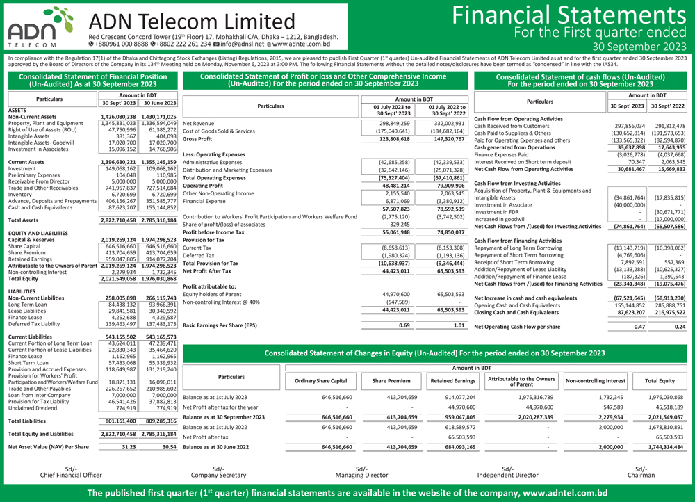 Q3 Financial Statements of ADN Telecom Limited