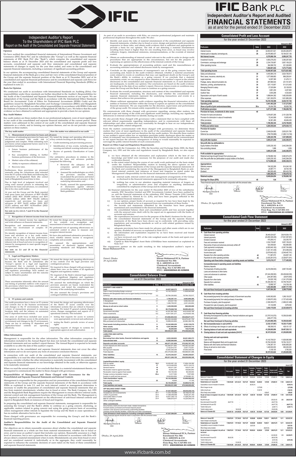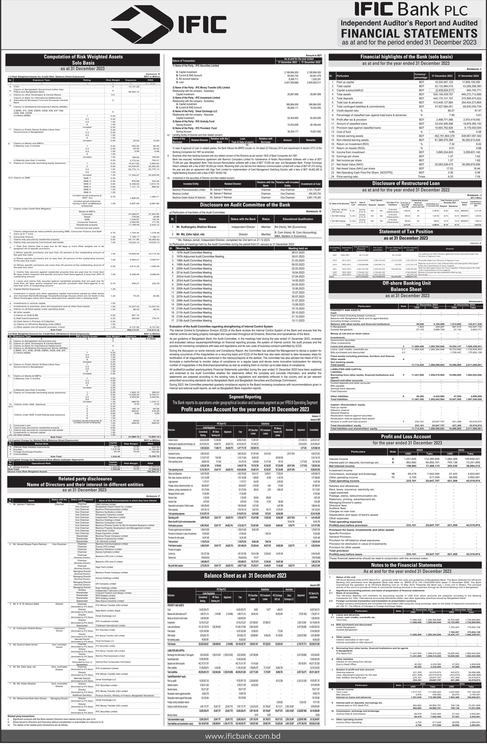 Independent Auditor’s Report and Financial Statemnts of IFIC Bank PLC