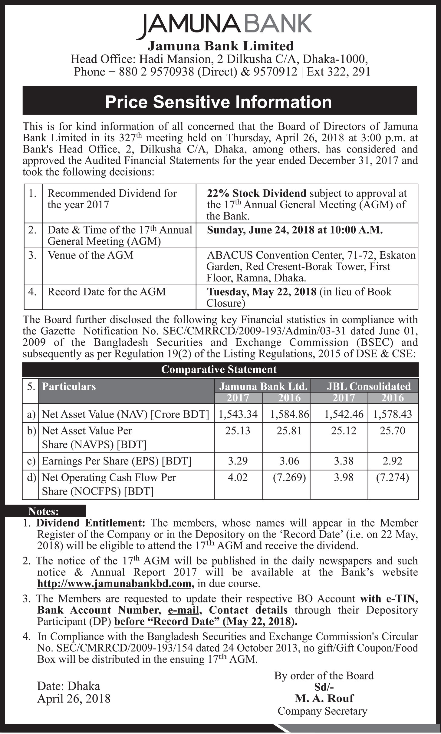 Information Sensitive to Share Price (Q2) of Jamuna Bank
