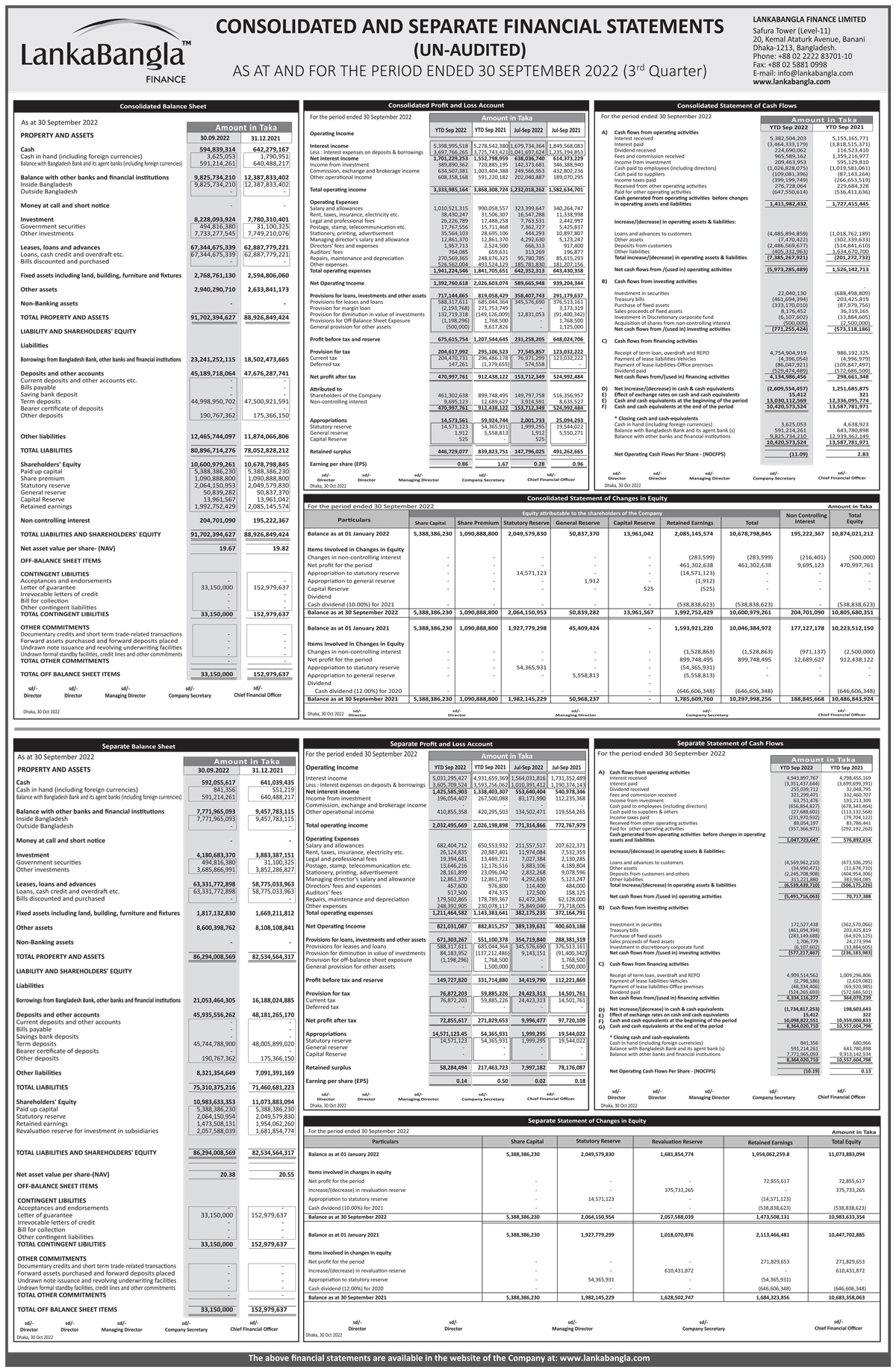 Un-audited Consolidated Financial Statements (Q3) of LankaBangla Finance PLC.